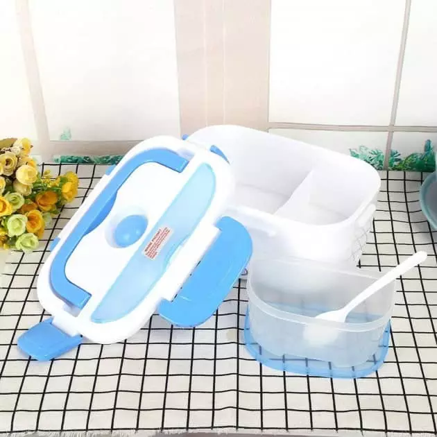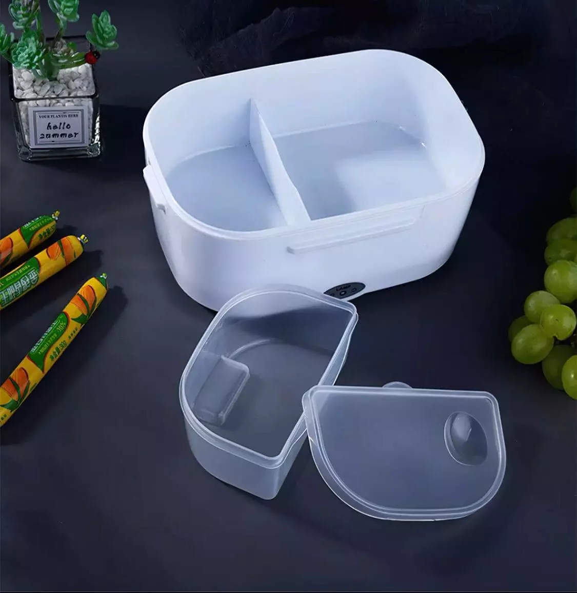 Наличие двух контейнеров – сам ланч-бокс с подогревом и пластиковый контейнер внутри!